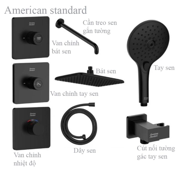 Sen tắm âm tường American Standard màu đen là dòng sản phẩm cao cấp đến từ thương hiệu nổi tiếng của Mỹ – American Standard, được thiết kế để mang lại trải nghiệm tắm sang trọng và tiện nghi tối đa. Khác với các loại sen tắm thông thường, toàn bộ phần ống dẫn nước của mẫu sen này được lắp âm vào tường, giúp tiết kiệm không gian, tạo cảm giác gọn gàng và hiện đại. Màu đen sơn tĩnh điện nổi bật chính là điểm nhấn thẩm mỹ, thể hiện phong cách tinh tế và đẳng cấp cho không gian phòng tắm.