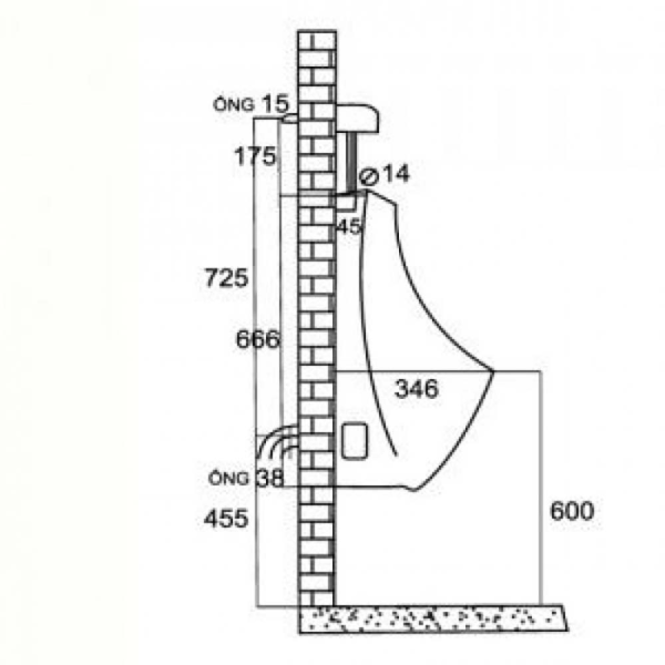| Phương pháp lắp đặt | Bắt tường, đi kèm với các mẫu bồn tiểu nam treo tường |