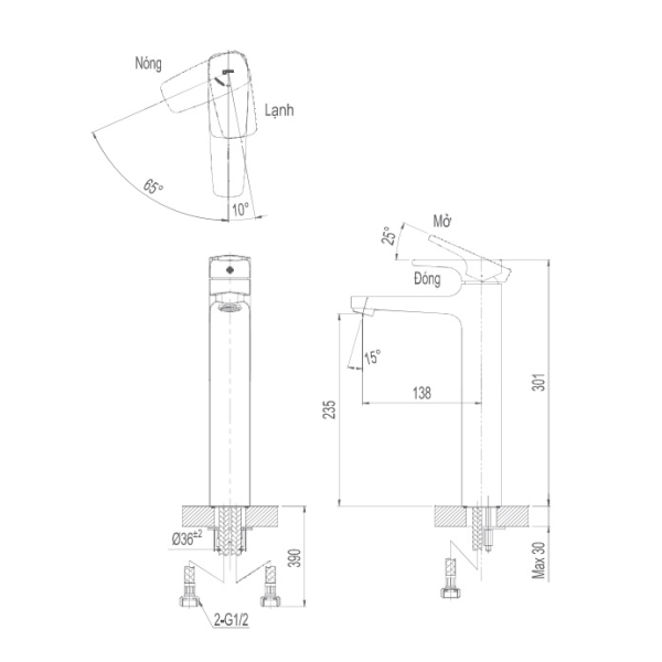 Thông số kỹ thuật Vòi lavabo nóng lạnh Inax LFV-5000SH thân cao |