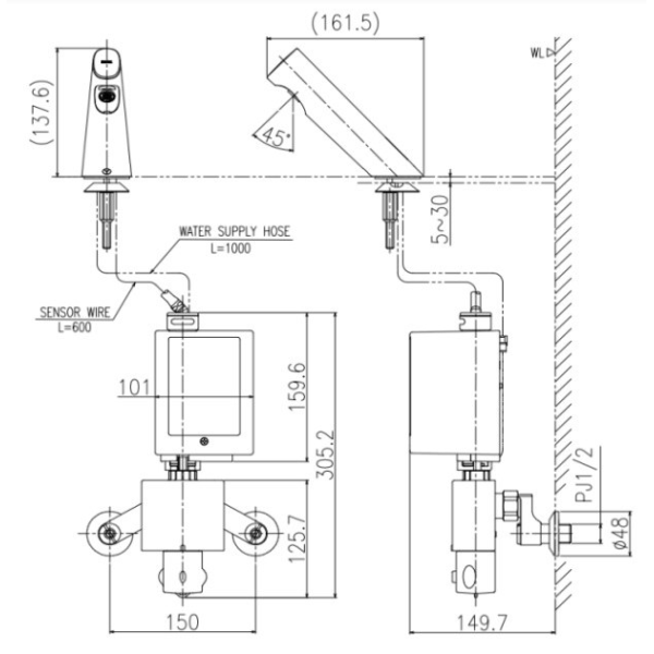 Thông số kỹ thuật Vòi lavabo cảm ứng Inax AMV-91K |