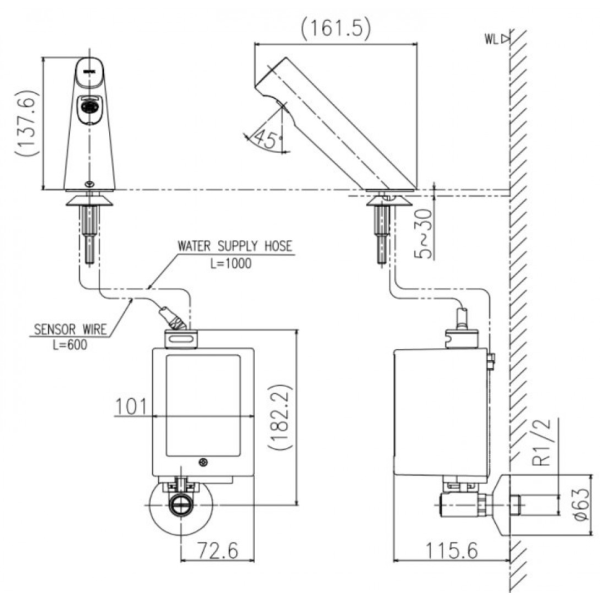 Thông số kỹ thuật Vòi lavabo cảm ứng Inax AMV-300 |