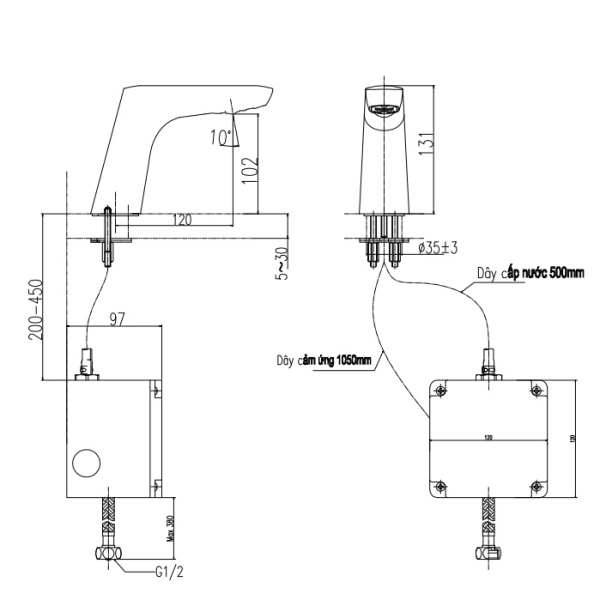 Thông số kỹ thuật Vòi lavabo cảm ứng Inax AMV-50B |