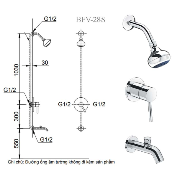 Loại: Sen tắm âm tường hai đường nước (nóng và lạnh)