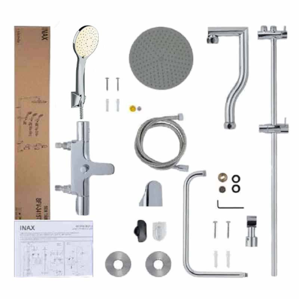Hệ thống sen tắm cây Inax BFV-3415T-9C với chức năng điều chỉnh nhiệt độ được trang bị đầy đủ các phụ kiện quan trọng, mỗi bộ phận đảm nhận một vai trò nhất định để tối ưu hóa hiệu suất và mang lại trải nghiệm sử dụng hoàn hảo. Cụ thể như sau: