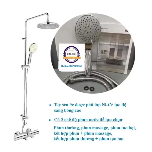 Với hơn 10 năm kinh nghiệm trong ngành thiết bị vệ sinh, Nội Thất Hưng Phát cam kết mang đến cho khách hàng những sản phẩm vòi sen tắm cây Inax BFV-3415T-9C chất lượng, bền bỉ và đẹp mắt. Sen tắm cây này được thiết kế thông minh với hệ thống điều chỉnh nhiệt độ dễ dàng, tay sen 5 chế độ phun nước linh hoạt và đầu sen chùm lớn, mang lại trải nghiệm tắm thư giãn tuyệt vời.