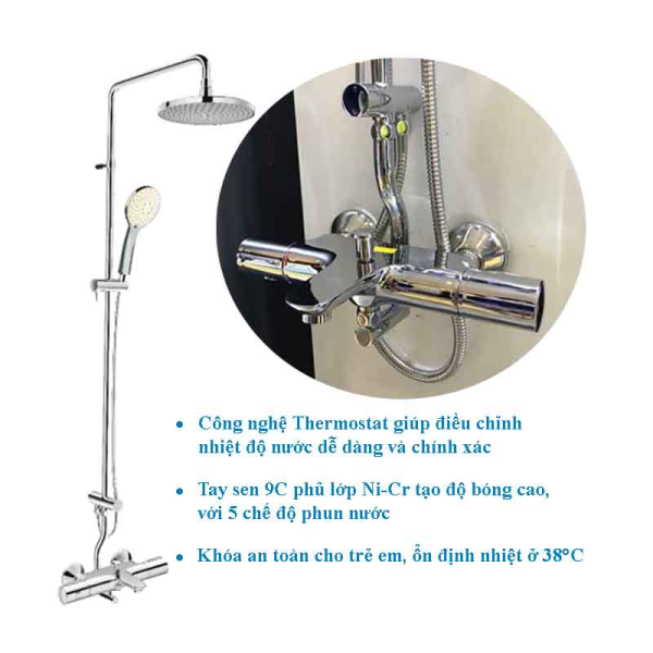 Sản phẩm sen tắm nhiệt độ BFV-3415T-9C còn được trang bị công nghệ chống bỏng tiên tiến, ngăn chặn tình trạng nước nóng đột ngột, đặc biệt quan trọng với các gia đình có trẻ nhỏ.