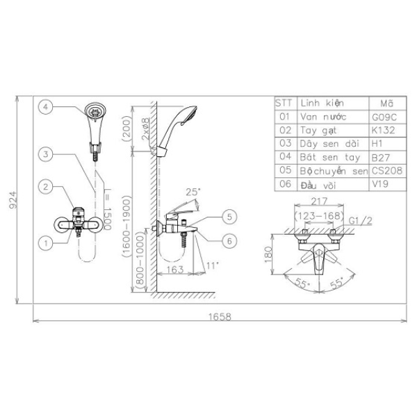 | Thông số kỹ thuật Vòi sen tắm nóng lạnh Viglacera VG568 | |