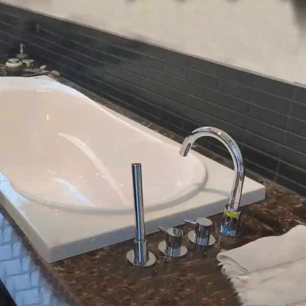 Thiết kế cao cấp, phù hợp với bồn tắm hiện đại và không gian phòng tắm sang trọng.